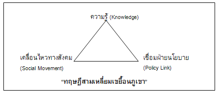 กลไกในการขับเคลื่อนต้องอาศัยทั้งพลังภายใน และพลังนอกนอกให้สอดประสานกัน โดยอาศัยทั้งสองพลังเข้าไปมาช่วย ตามกรอบของสามเหลี่ยมเขยื้อนภูเขา ดังภาพ