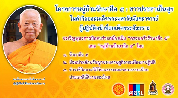 (๔) พัฒนา และส่งเสริมให้ชุมชนยึดมั่นในคุณธรรมจริยธรรม เช่น ศีล ๕ และหลักการของศาสนาที่ตัวเองเคารพนับถือ